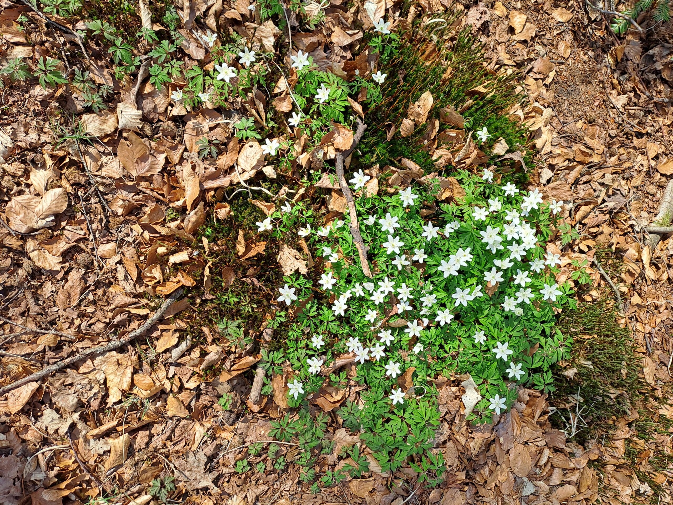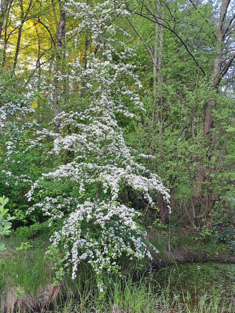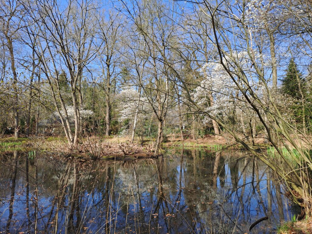 De Bosanemoon en de Krentenboom bloeiden rond de vijver uitbundig.
