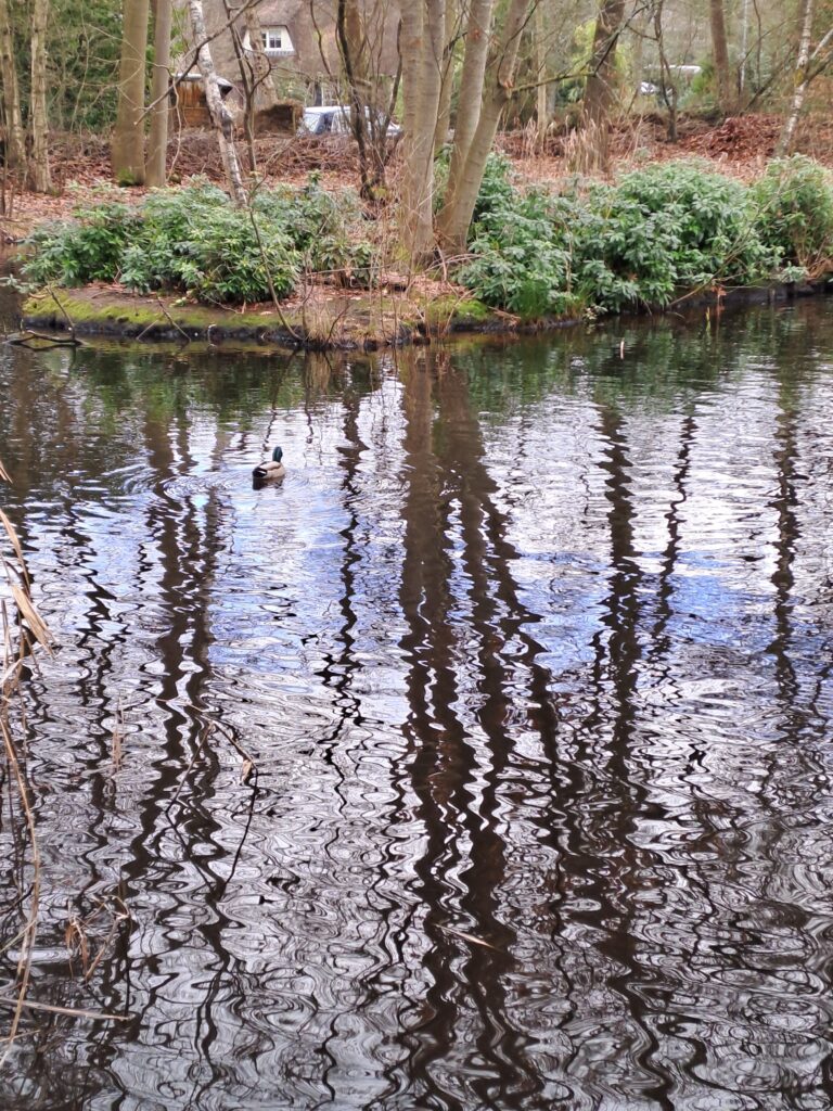 Wij waren bij de Heemtuin om even te kijken, want aanstaande zaterdag 14 februari hebben we de eerste werkdag van 2026. En ja hoor, het water in de kleine vijver stond hoog, dus er moest weer gedregd worden. Het eiland met de rododendrons staat er prachtig bij en ook bij de Leemkuil staat het water hoog.
