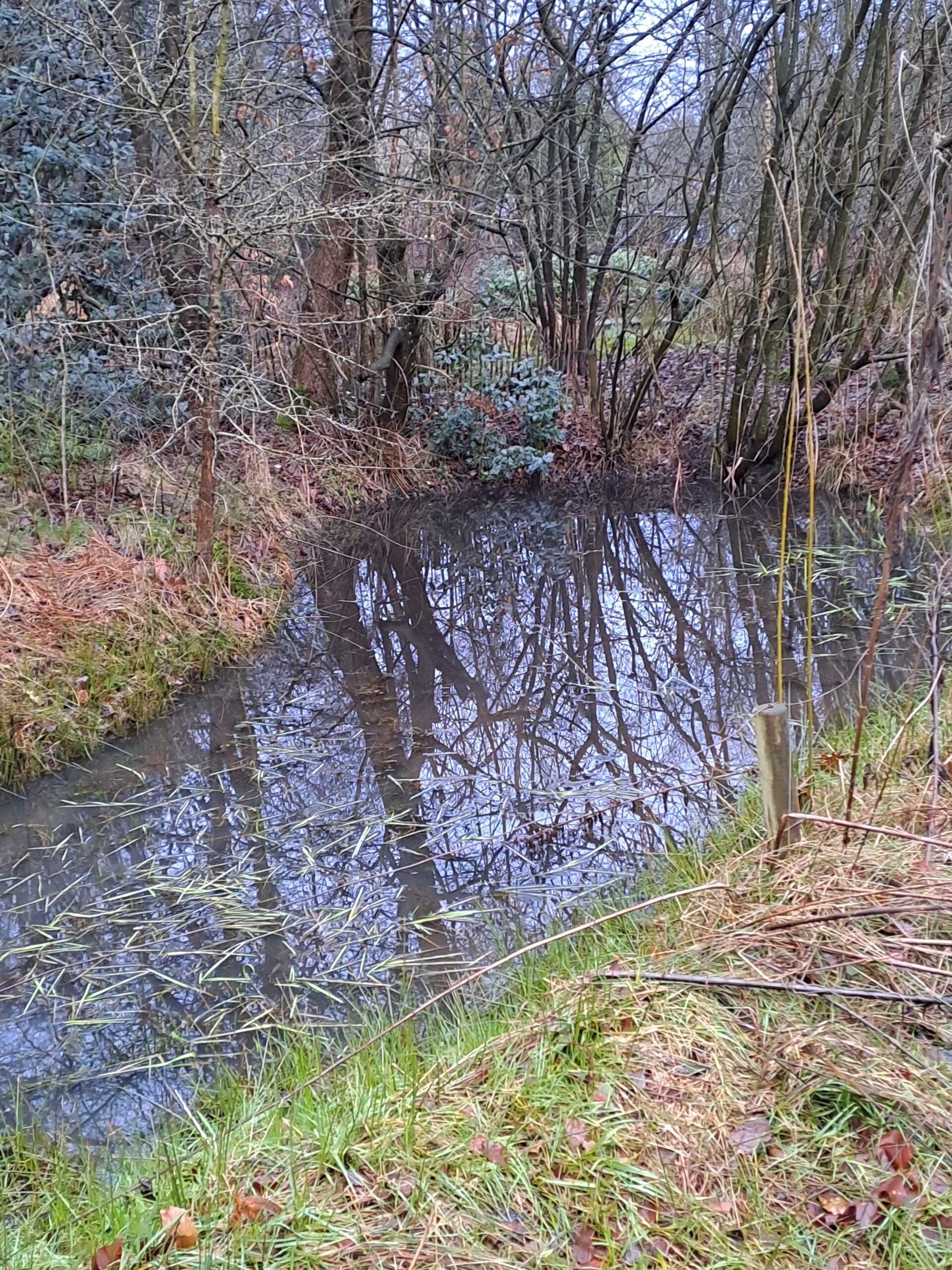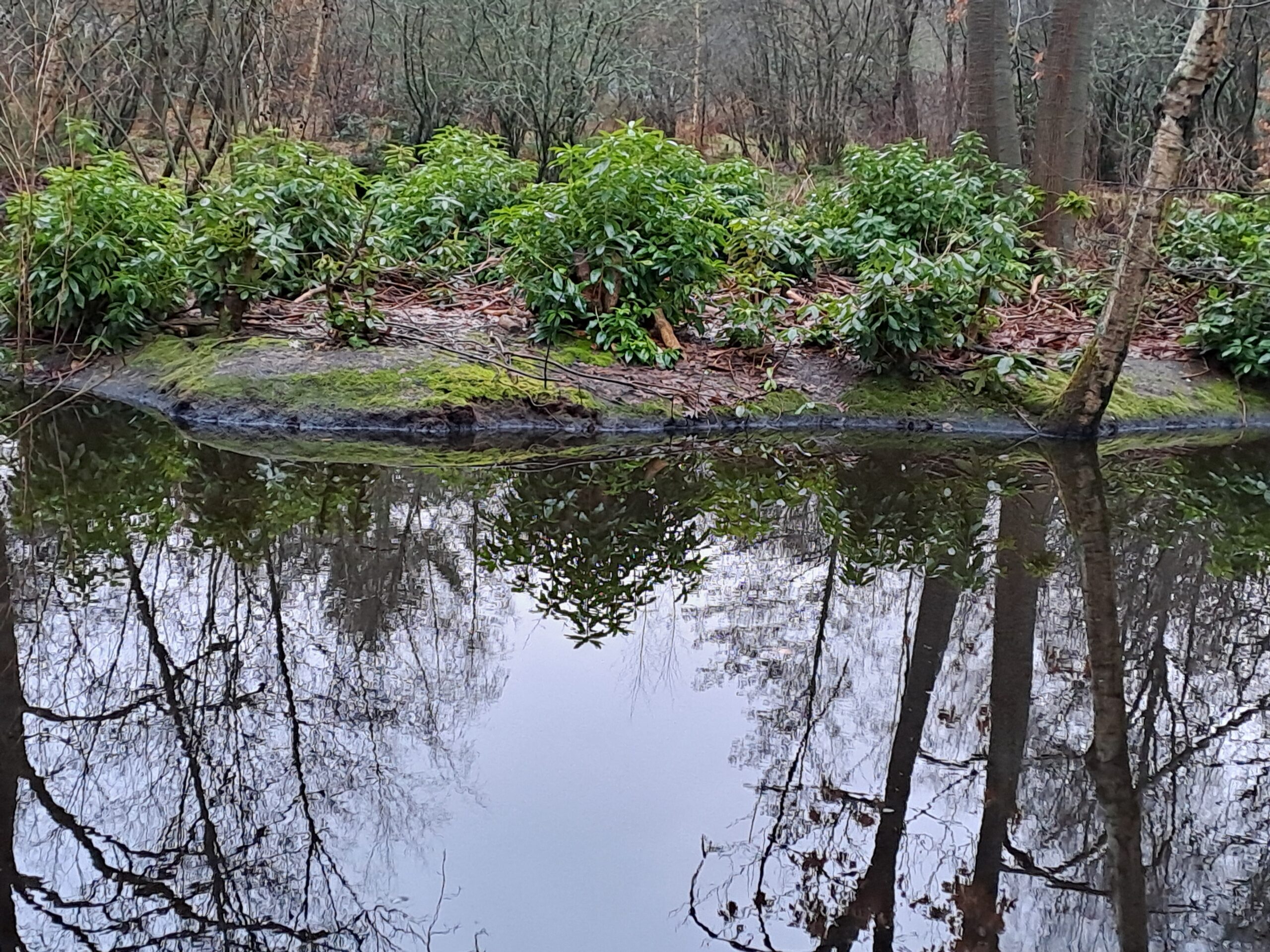 Wij waren bij de Heemtuin om even te kijken, want aanstaande zaterdag 14 februari hebben we de eerste werkdag van 2026. En ja hoor, het water in de kleine vijver stond hoog, dus er moest weer gedregd worden. Het eiland met de rododendrons staat er prachtig bij en ook bij de Leemkuil staat het water hoog.